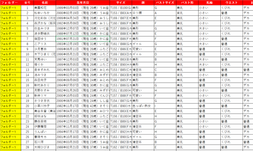 【2】人気女優600人の詳細セグメントシート