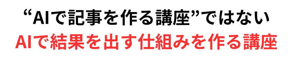 「AIが稼ぐための考え方」から「設計」「記事作成」「添削」まで、“結果が出る仕組み”を丸ごと作る講座です。