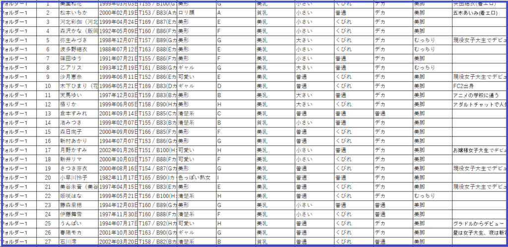 ✅女優一覧シート(非売品/使い方説明書付き)