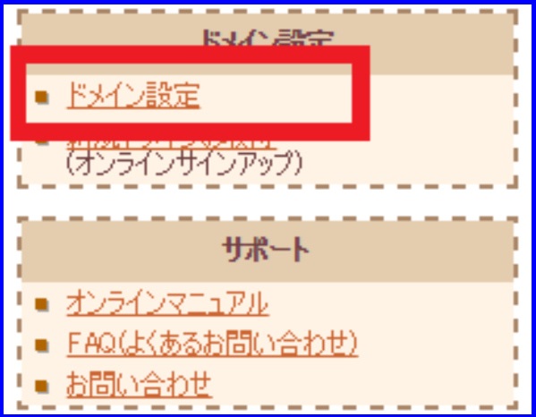 まず、先ほどあなたが取得しましたドメインの設定です。ドメインの設定は管理画面左メニュー下部にあります「ドメイン管理」をクリックしてください。