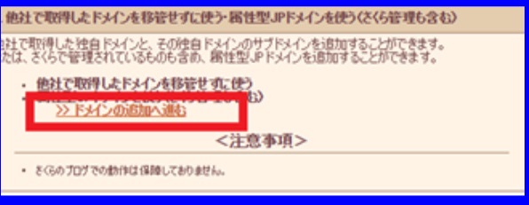 同じように赤囲み「ドメインの追加へ進む」をクリックして下ください。