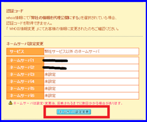 さくらインターネットで発行している「ネームサーバー」アドレスを上記に入力して設定変更をクリックしてください。