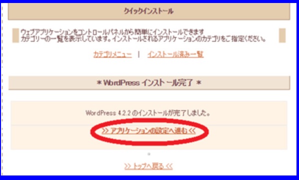囲み箇所「アプリケーション設定へ進む」をクリック。