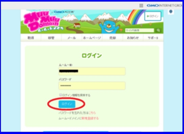 では、最後にもう一度ムームードメインに戻ってログインをしてください。