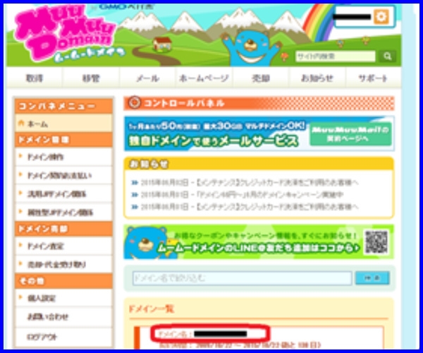 ムームードメイン ←ここをクリックしてムームードメインへ
