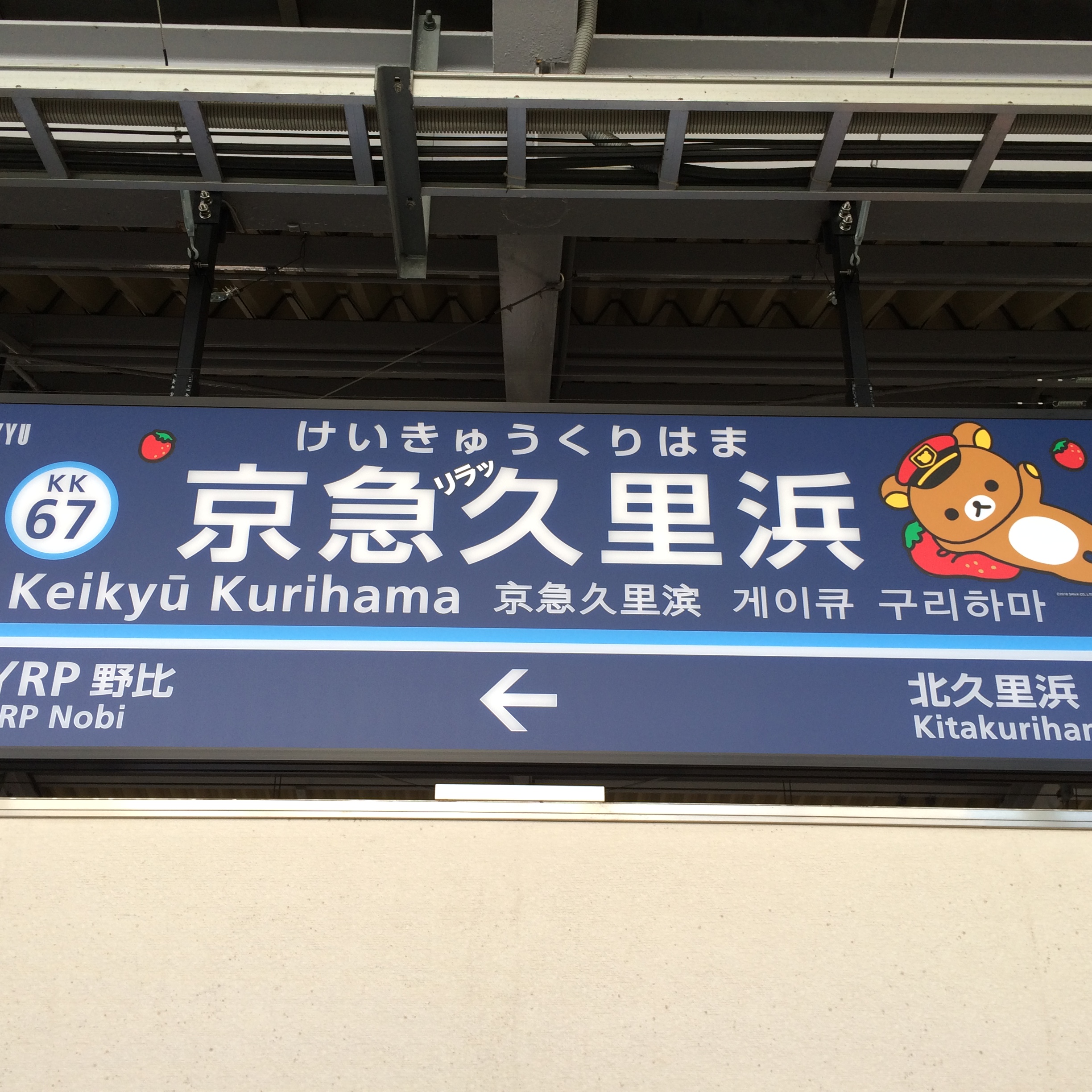 最近三崎口の駅名が「三崎マグロ口」になったとテレビで見かけたので知っていたけど、その手前の久里浜も「リラッ久里浜」と駅名がある。