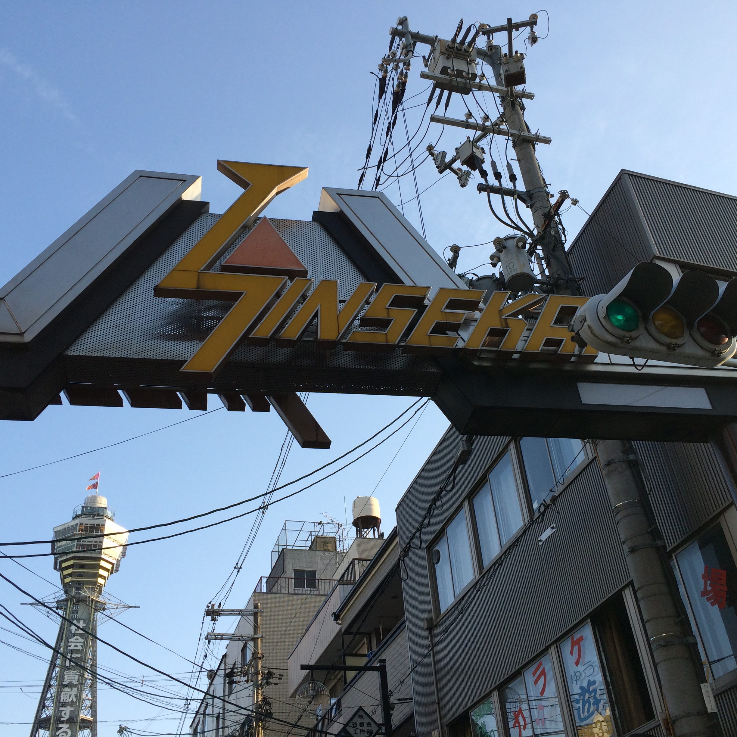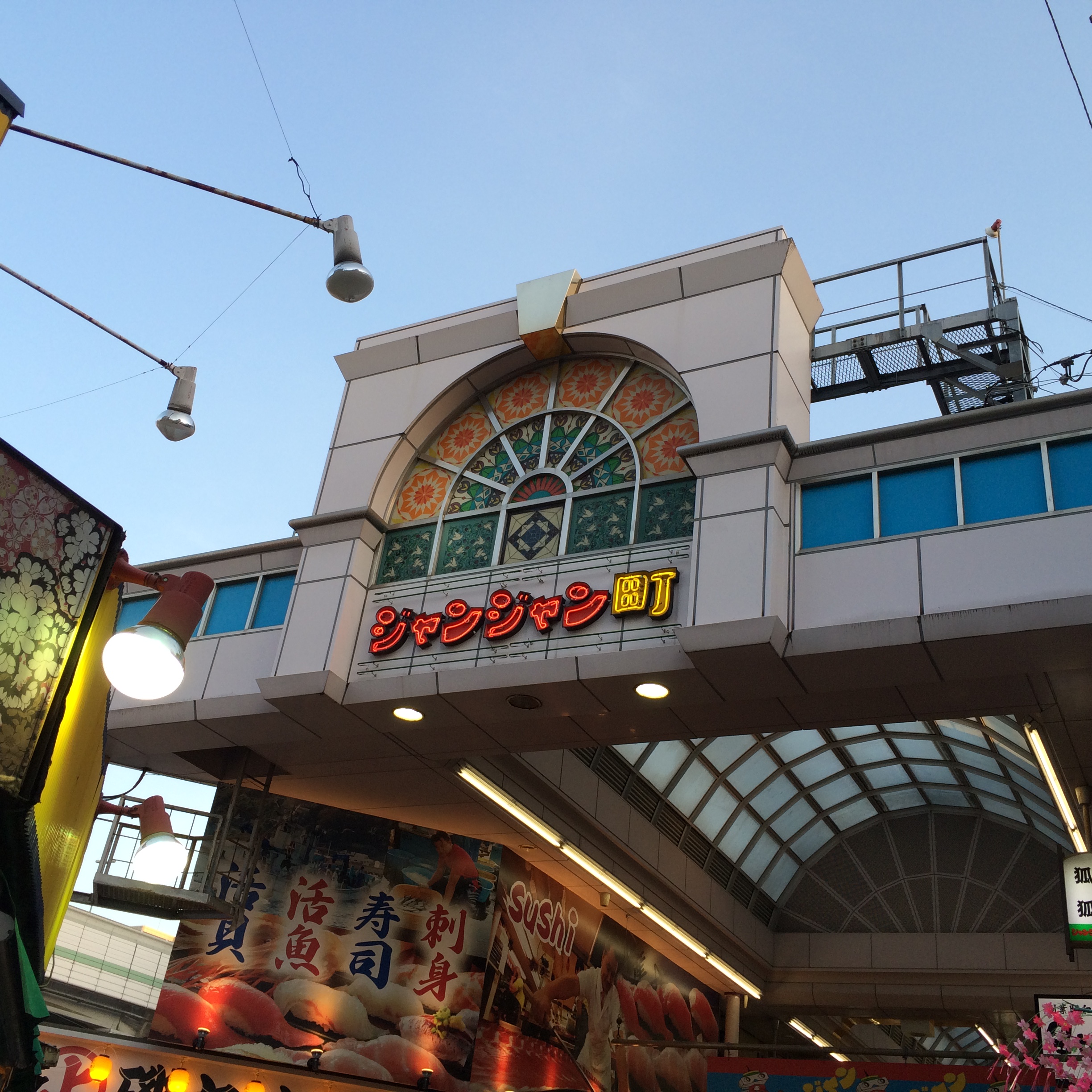 茶臼山を一回りしたところで日が落ちてきたので、徒歩10分圏内にある、通天閣の麓エリアへ