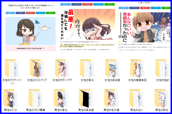 ◆女性向け記事と画像セット(クッション記事13パターン/56枚)
