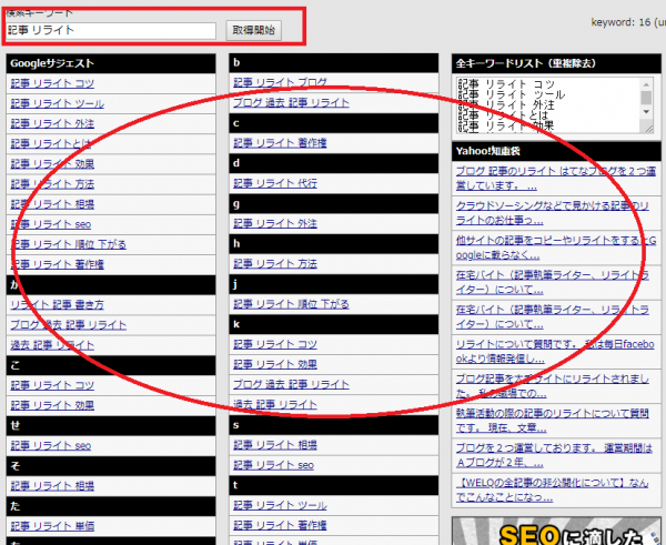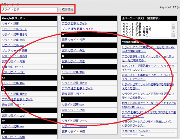 次は、新しい新しい関連キーワードの収集法ですが・・・