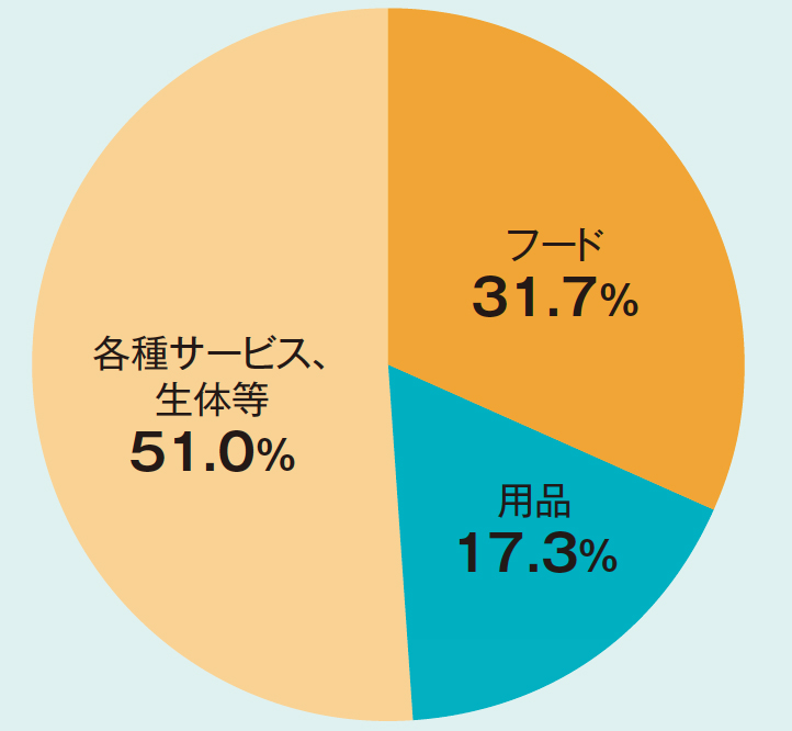 ↑こちらの内訳をみますと、やはり常用する「ペットフード」が当たり前に多いですが、注目をしていただきたいのは「用品」項目です。