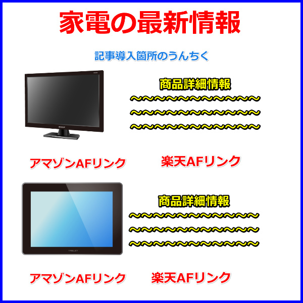 ここは、私でも個別記事の詳細情報をピックアップし、記事を作成するのに4週間かかりましたので押し売りではありませんが、こちらの「家電アフィリエイトで稼ぐ記事」を購入されたほうが早いです。