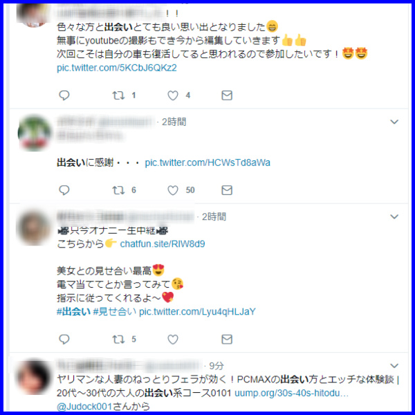 また、twitterユーザーは「文字を読まない」といわれていますが、男性向けでしたらシモネタやマンガ、エロチックな画像表示