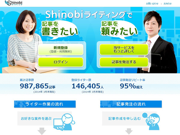 shinobiライティングは、その名の通り、ライティング特化のクラウドソーシングサイトです。