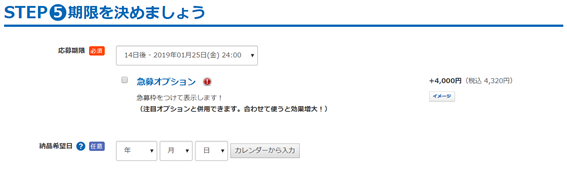 応募できる期限を決めます。こちらに関しては、フォーマットの通り、まずは14日でよいと思います。