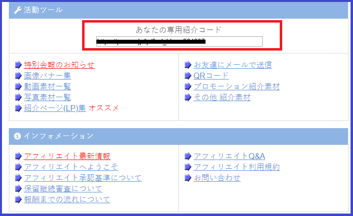 ブログやサイトを運営している人は、サイト内にコードを張り付けるだけで利用できます。その他にもメールなどでもプロモーション活動ができるため、興味がある友達に気軽に紹介して報酬を獲得することも可能です。