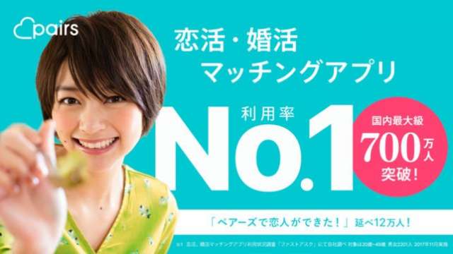利用率No.1恋活・婚活マッチングとして選ばれた実績もあるpairs。累計会員数が800万人を突破していて、たくさんの人のマッチングを生み出しています。