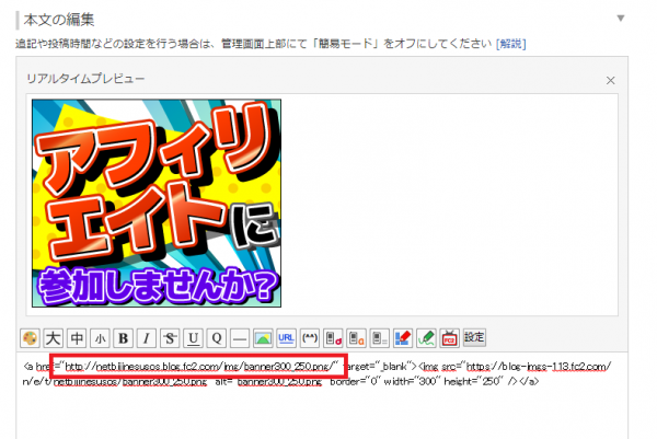 <a href="ここのURLをアフィリエイトURLに変更する" target="_blank"><img src="https://blog-imgs-113.fc2.com/n/e/t/netbijinesusos/banner300_250.png" alt="banner300_250.png" border="0" width="300" height="250" /></a>