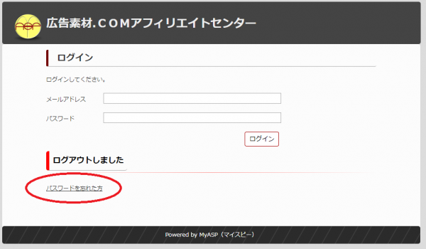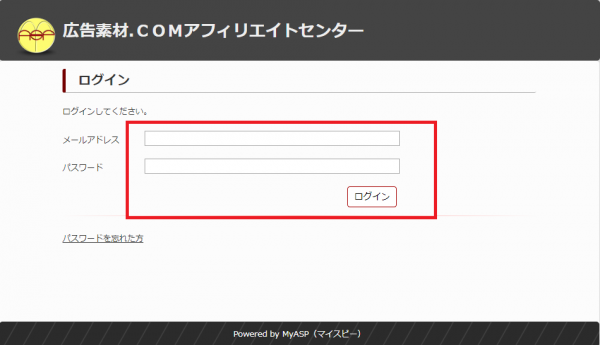 ●広告素材.COMアフィリエイトセンターログイン画面はこちら!