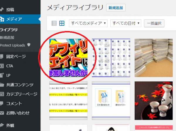 ワードプレスでバナー素材を作るには、アフィリエイトセンターにありますダウンロードURLよりお好きなバナー素材を選択し、あなたが掲載したいサイズのバナーをアップロードしてください。