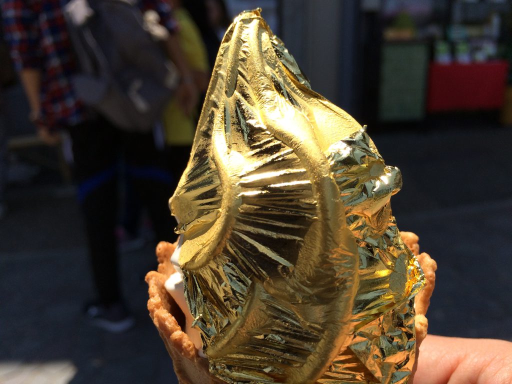 入口付近に合った名物の金粉ソフトを食べてみたけど、味はノーマル、お値段3倍というところでしょうか。