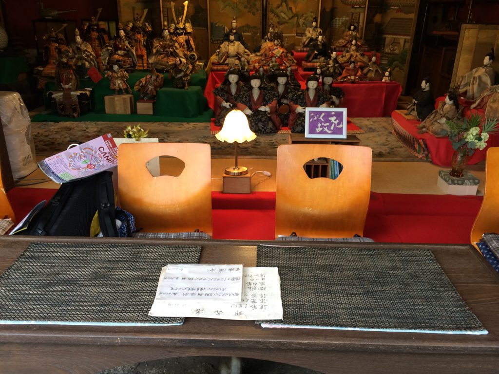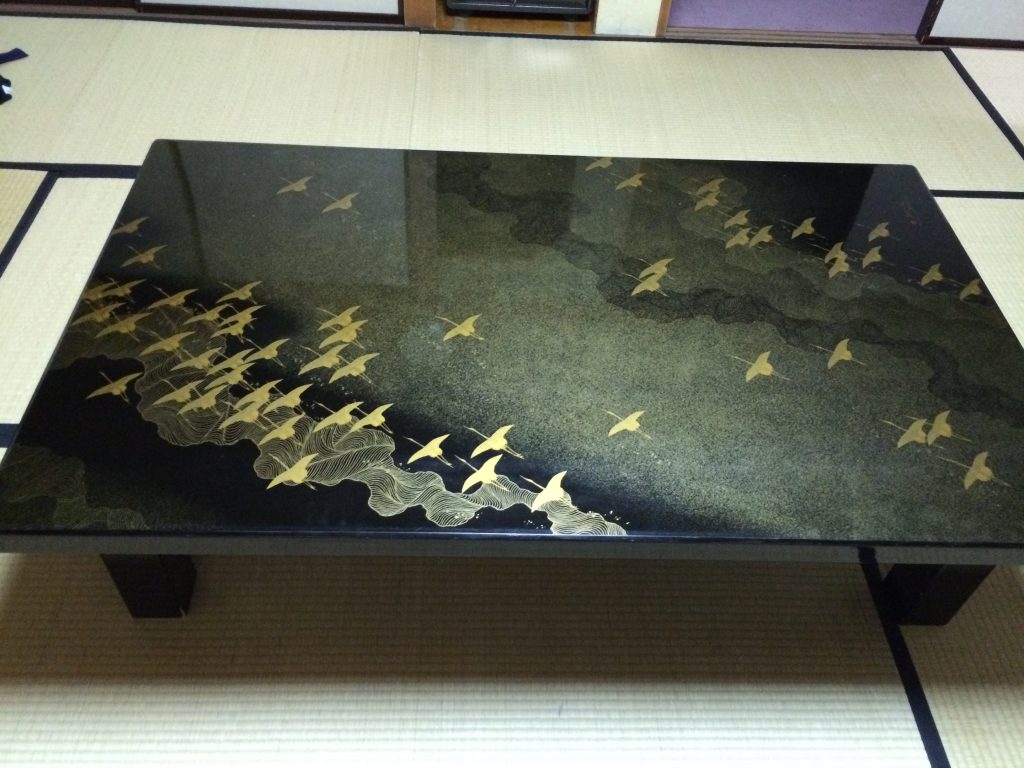 とりあえず宿へ行ってみると、ご当地名産品の「輪島塗」の大きなテーブルがあって、これ見てグロッキーな体調も回復しテンションMAX。