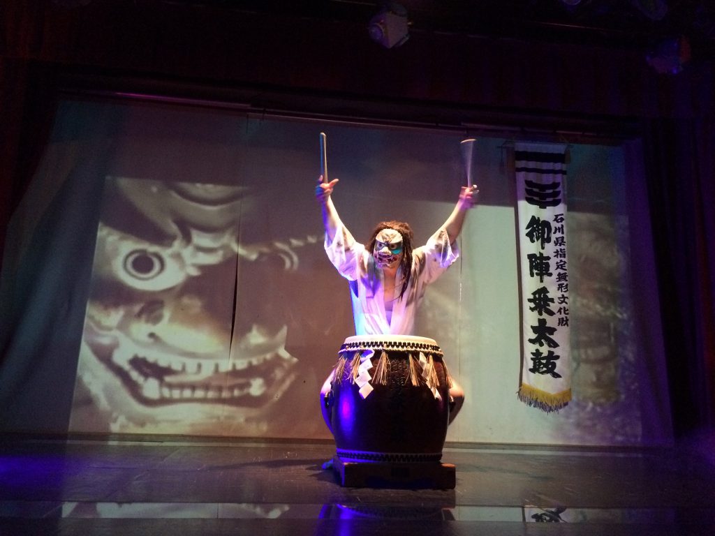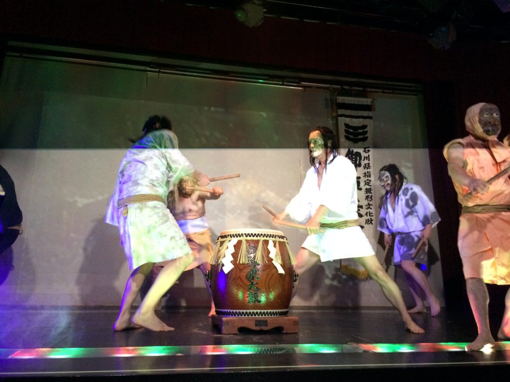 で、少し食べてから、能登半島の観光名物の「御陣乗太鼓(ごじんじょだいこ)」を見学に。