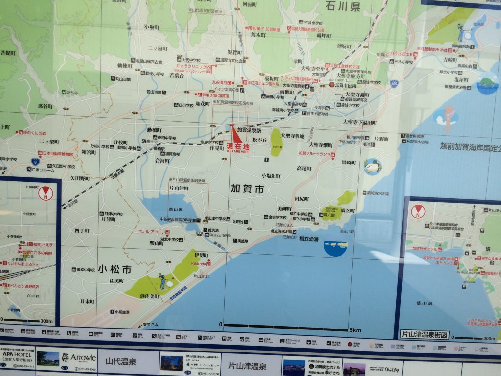 はじめて来た加賀温泉なのですけど、この付近は観光スポットも多いので和倉温泉の一泊、金沢市内の一泊を省略して、加賀温泉に二泊するべきだと後悔するくらいでした。