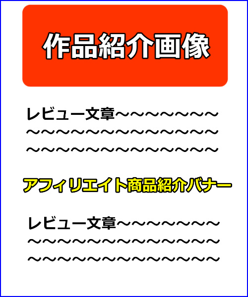 まず、ランキングページの作成法になりますが、その他のアフィリエイトジャンルとは異なり、ボタンは個別作品のレビュー記事へ飛ばすだけです。