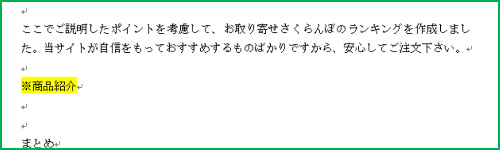 実際にあなたが紹介する商品個所には付箋がありますので、対象個所であなたがアフィリエイトする商品をご紹介してください。