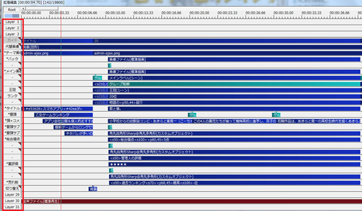 ここでは、Layer1:効果音、Layer2:画像、 Layer3:テキスト 、Layer4:BGM