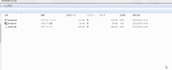 AviUtlのファイル内に移動させましたら完了です。(AviUtlファイル内は図のように表示されます)