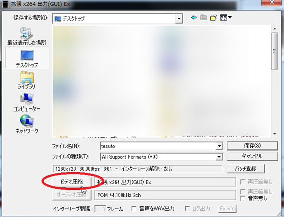 ビデオ圧縮を選択しますと、さらに以下の画面がポップアップで表示されます↓↓