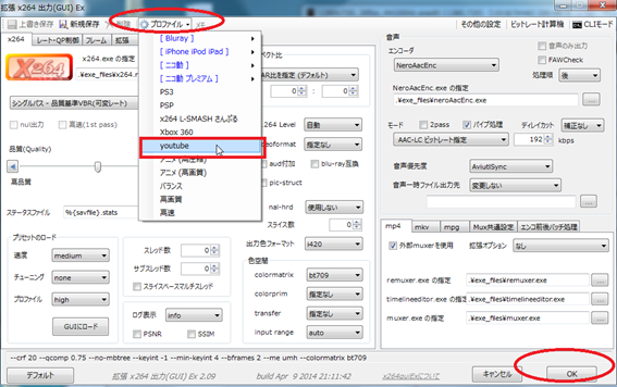 「拡張×264出力(GUI)Ex」選択後、こちら画面がポップアップで表示されます↓↓