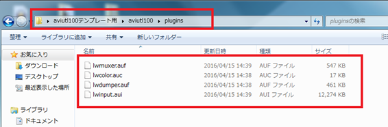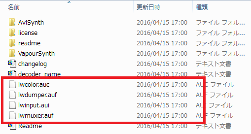上記囲みの「lwcolor.auc」「lwdumper.auf」「lwinput.aui」「lwmuxer.auf」を移動させます。