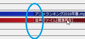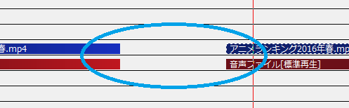 下部の赤青ラインは「セット」となっていますので、編集する際は映像と音声が一緒に編集されます。