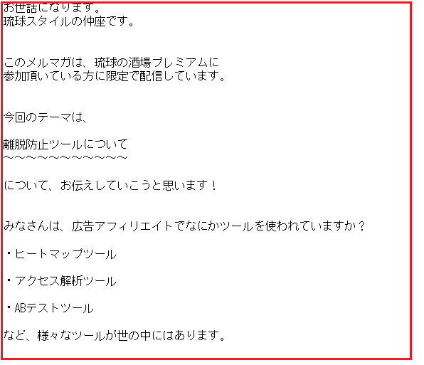 株式会社琉球スタイルは、アフィリエイト業界でも指折りの売り上げ実績を誇る会社で、毎月、自社で成功した具体的なノウハウや、アフィリエイト関連の最新情報を琉球の酒場プレミアムのサイト内でアフィリエイターさんへ共有してくれます。