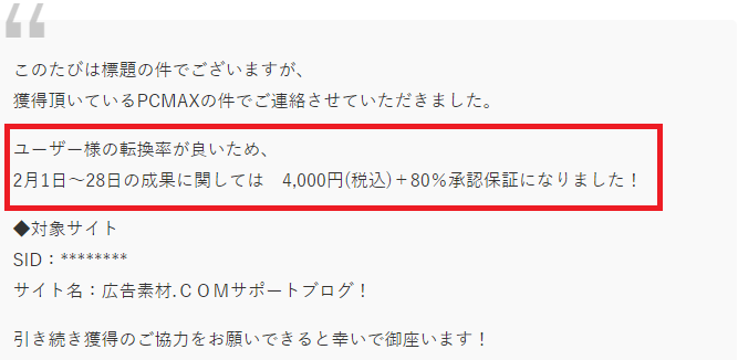 なぜかといえば、コンテンツを作りこんだ状態で交渉メールを送れば、対象の広告主に特別単価を却下された場合でも、類似案件の特別単価交渉を代理でしてくれるからです。