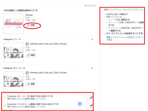広告配信が開始してからの修正は「情報収集期間」が延長となり、結果的にコンバージョンが安定的に獲得できる時間ロスが発生しますので、配信開始する前に修正することがないように、動画やテキスト文章などを確認ください。