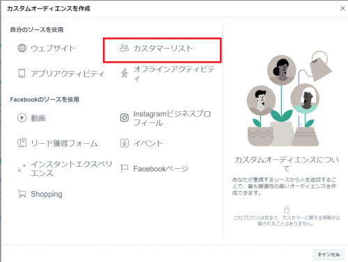 カスタマーリストとは、あなたが所有している顧客リストの情報をFacebook広告にアップロードできる機能です。