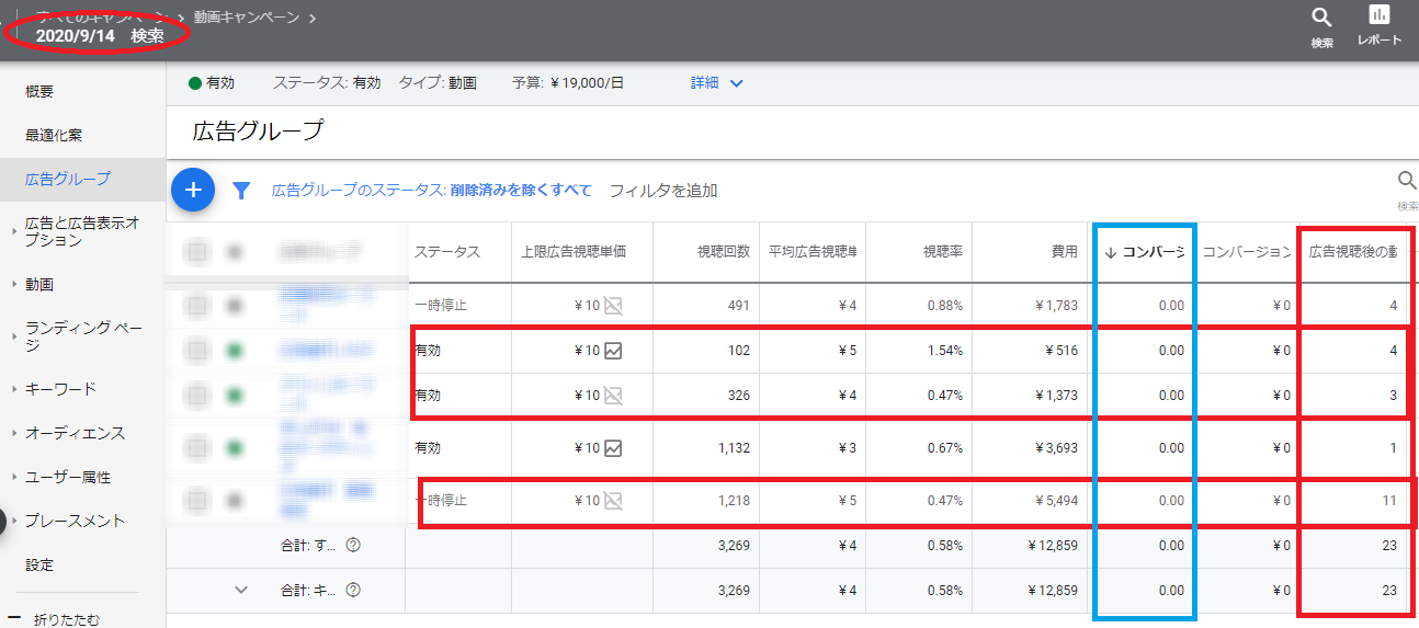 2020年9月14日~20日までTrueViewディスカバリー広告を運用した結果・・・・