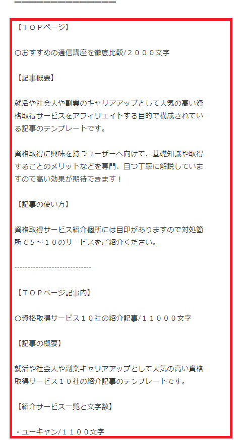 基本的に当サイトの記事作成テンプレートは、売れる記事構成となっていますので