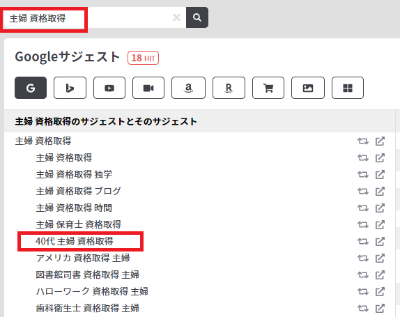 では、SEOキーワードの選定方法ですが、資格アフィリエイトで、あなたが選定したターゲットを主婦とした場合のSEO対策キーワードを抽出してみましょう!