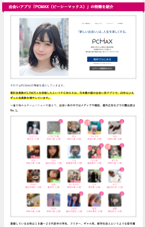 前記(3)のアフィリエイト記事でサイト登録してくれたユーザーがスムーズに異性と出会えるための情報を提供する、こちらも教育記事といわれるものになります。
