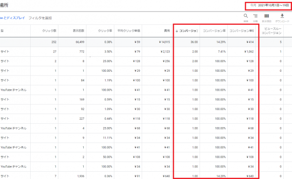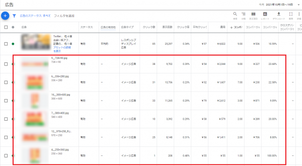 論より証拠で以下、直近2021年9月1日~19日までのGDN(グーグルディスプレイネットワーク)管理画面を開示しますと