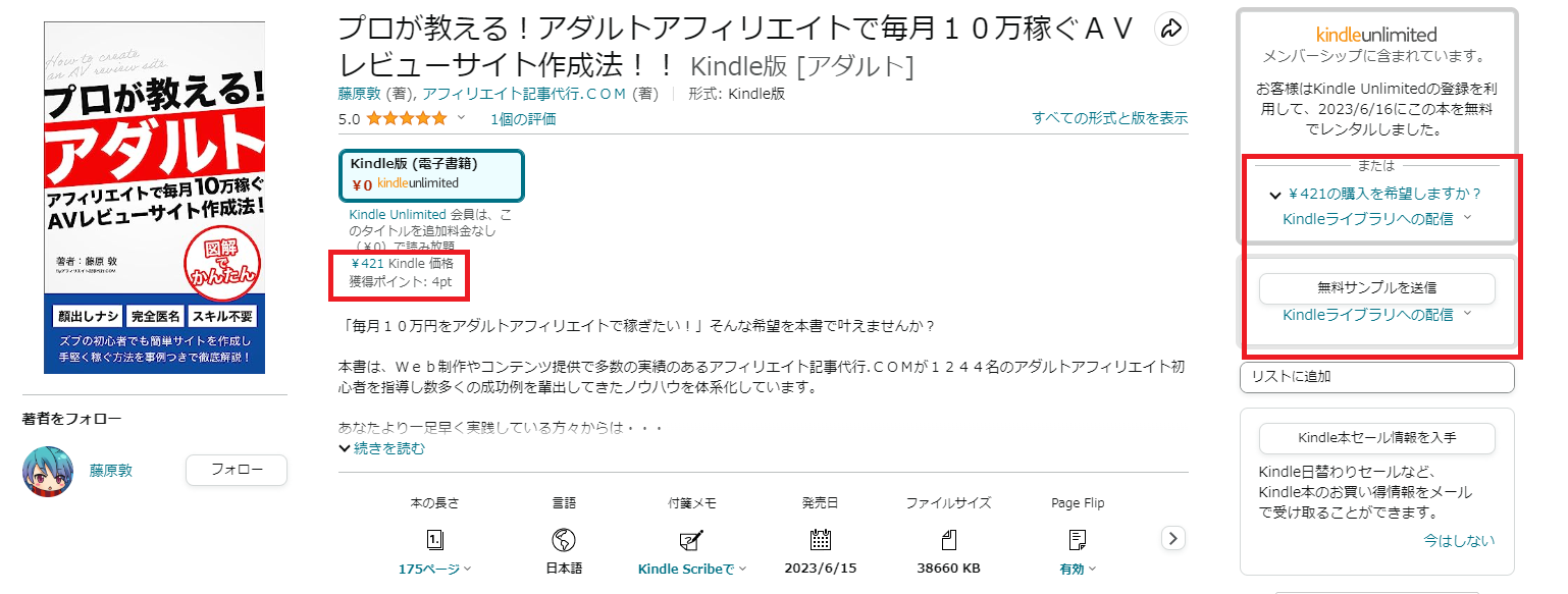 Kindle Unlimited(キンドル本の月額会員/初月お試し0円)のメンバーですと無料でお読みいただけます。通常のアマゾン会員の場合は「421円」でご購入をいただけます。