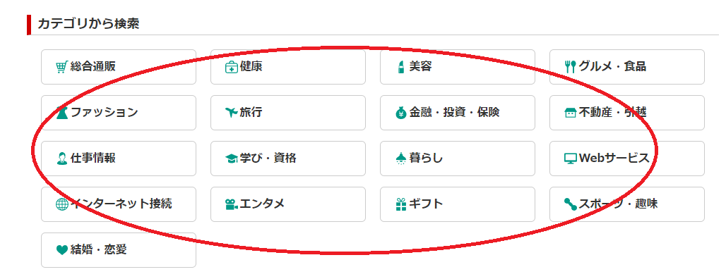 ASPと呼ばれるアフィリエイト広告が取り扱えるサイトへ登録すれば、紹介できる商品ジャンルが公開されています。