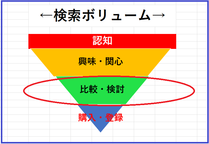 殆どのお客さんは、いきなり商品を買うのではなく一度本命と類似商品を比較したり先に利用した人の感想を参考に購入するか別商品に乗り換えるかを考えてから購入アクションすることが多いです。