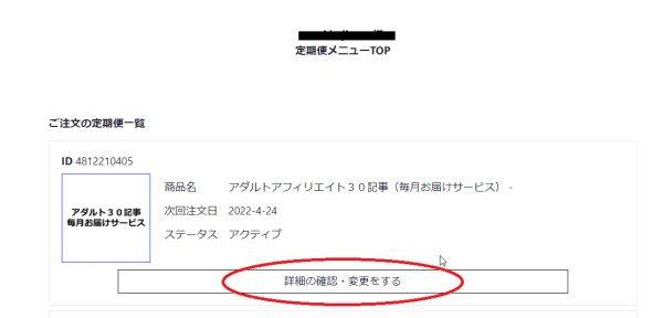 サービスの停止、解除方法はマイページの「サブスクリプションの管理」をクリックし、現在のサービスが表示されますので「詳細の確認・変更する」をクリックください。